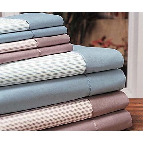 450 thread count Egyptian cotton in coordinated rose stripe and solid chambray from our European millAvailable in stripe or solid sheets Top sheets are a generously proportioned to fit modern bedding sizes Fitted sheets have deep pockets with full elastic to accommodate extra thick and pillowtop
